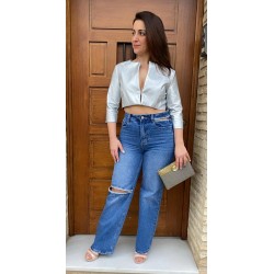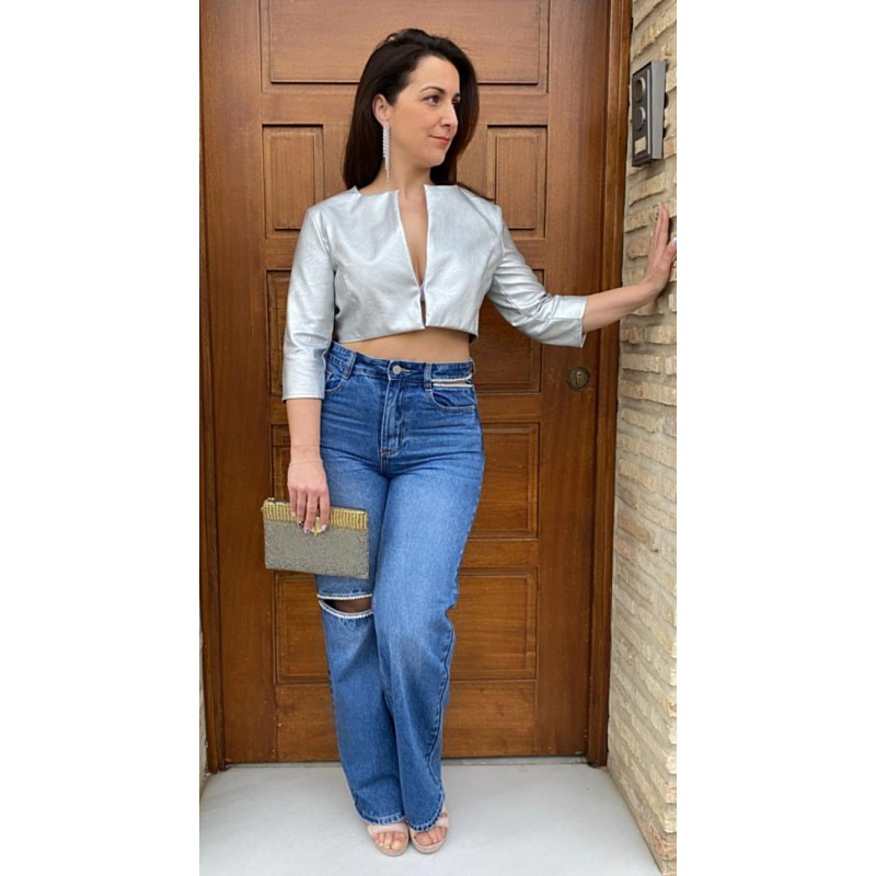 Bolero de piel sintética metalizada.