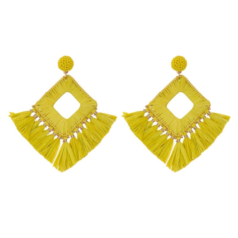 Pendientes grandes de paja en cuadrado con abanico. Hechos a mano